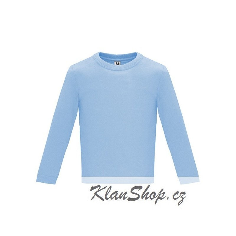 Dětské světle modré tričko s dlouhým rukávem bez potisku, pro kojence a batolata 6M-24M.