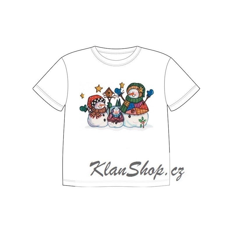 Dětské tričko s potiskem – Sněhuláčci v čepicích, rodinka sněhuláků.