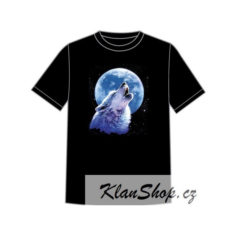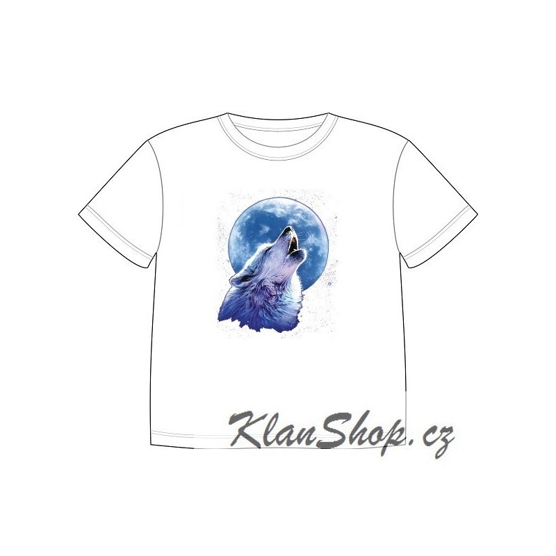 Dětské tričko s potiskem – Vyjící vlk s noční oblohou a měsícem.