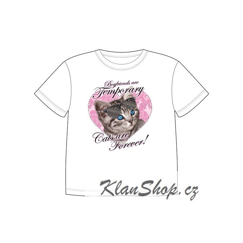 Dětské tričko s potiskem – Kočka s brýlemi, srdce s růžemi.