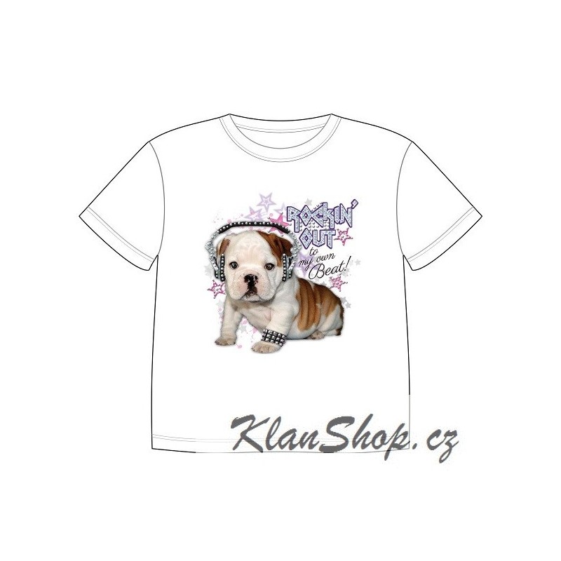 Dětské tričko s potiskem – Anglický buldok se sluchátky.
