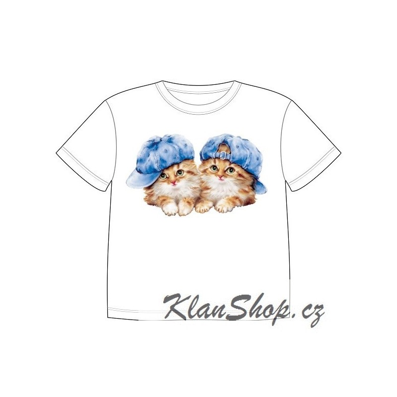 Dětské tričko s potiskem – Malá koťátka s modrými čepičkami.