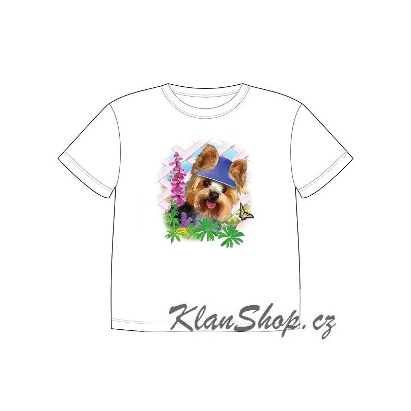 Dětské tričko s potiskem – Malý Jokršír vyplazující jazyk.
