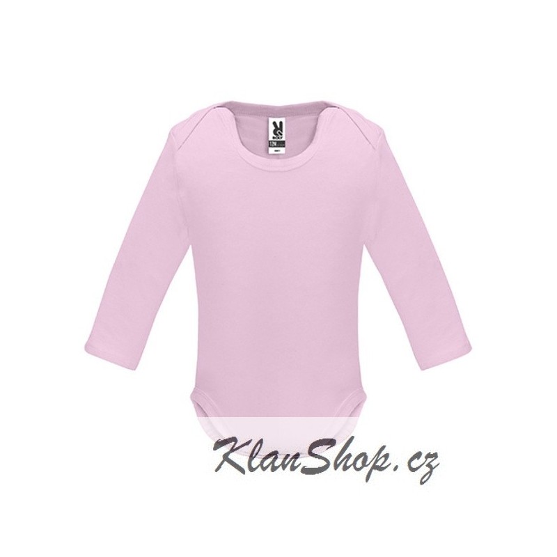Dětské růžové (kojenecké) body (dupačky) s dlouhými rukávy.