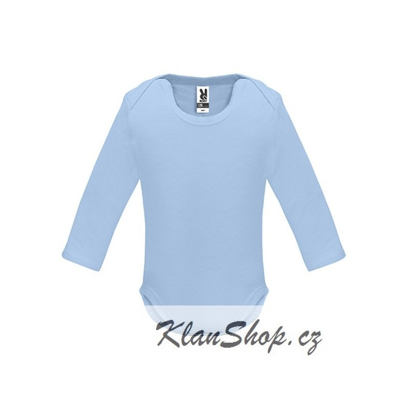 Dětské světle modré (kojenecké) body (dupačky) s dlouhými rukávy.