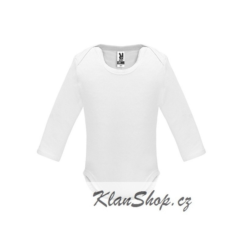 Dětské bílé (kojenecké) body (dupačky) s dlouhými rukávy.