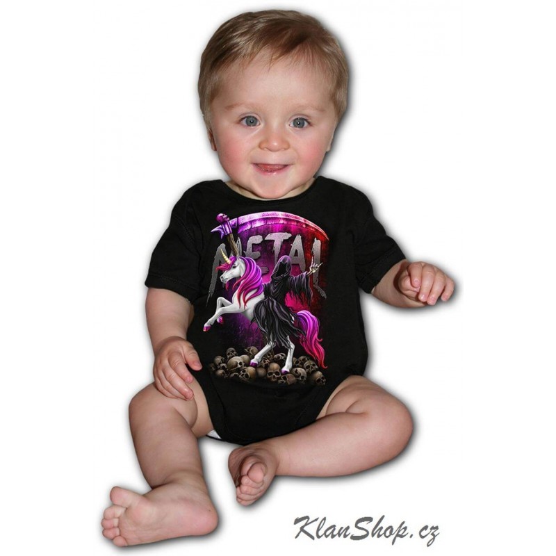 Dětské body dupačky Spiral direct - smrtka s kosou jedoucí na jednorožci.