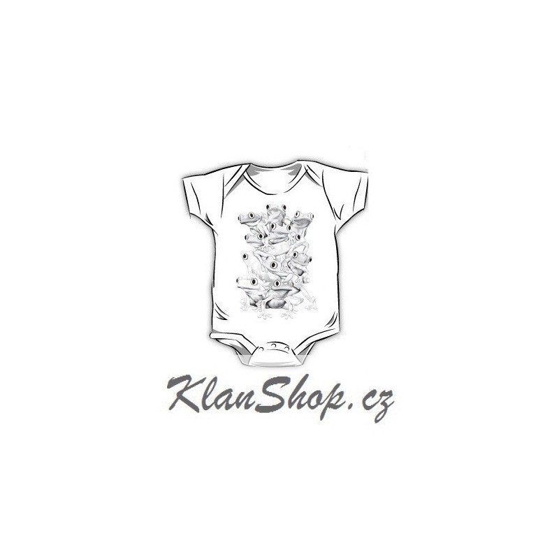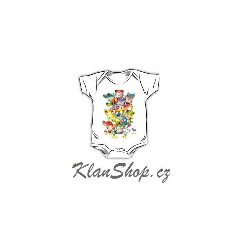 Dětské bílé (kojenecké) body (dupačky) s dobarvujícím se potiskem – Barevné žabičky.