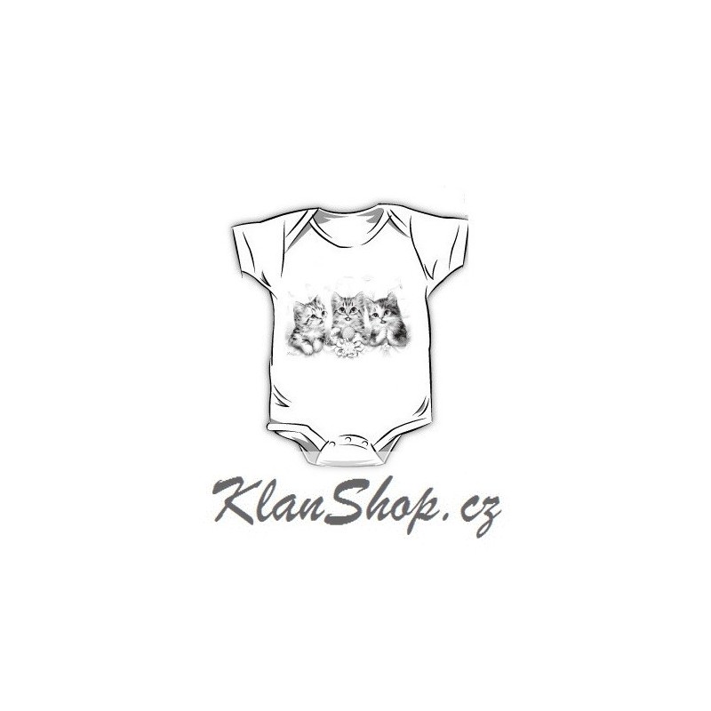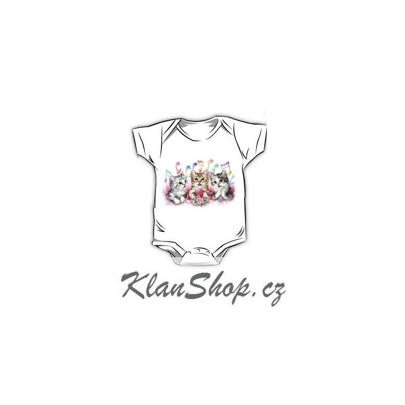 Dětské bílé (kojenecké) body (dupačky) s dobarvujícím se potiskem – Tři malá koťátka.
