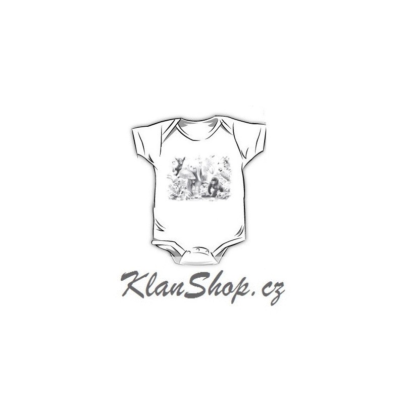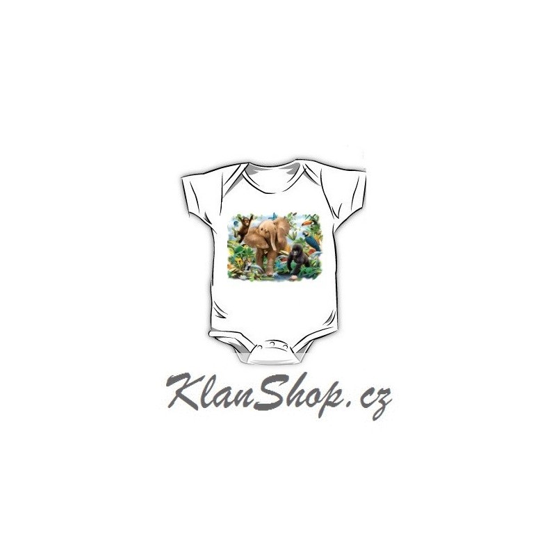 Dětské bílé (kojenecké) body (dupačky) s dobarvujícím se potiskem – Malá zvířátka z africké džungle.