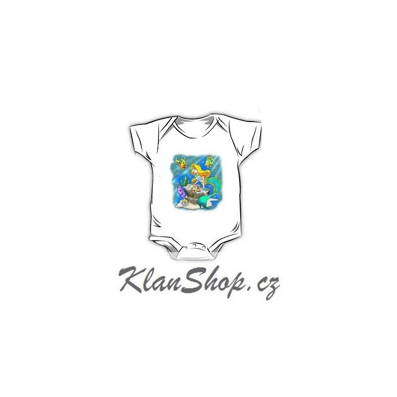 Dětské bílé (kojenecké) body (dupačky) s dobarvujícím se potiskem – Malá mořská víla s rybičkami.