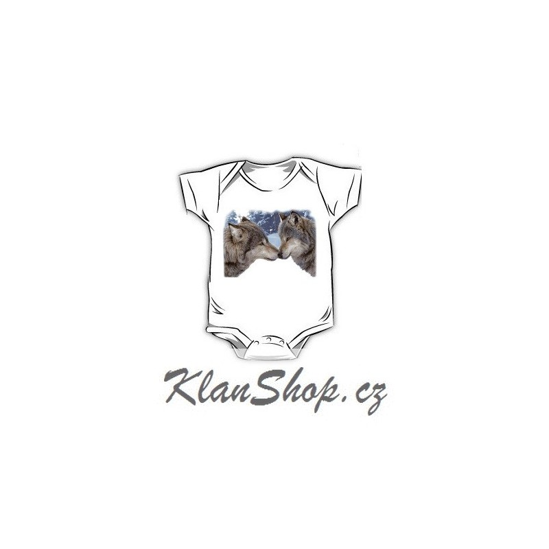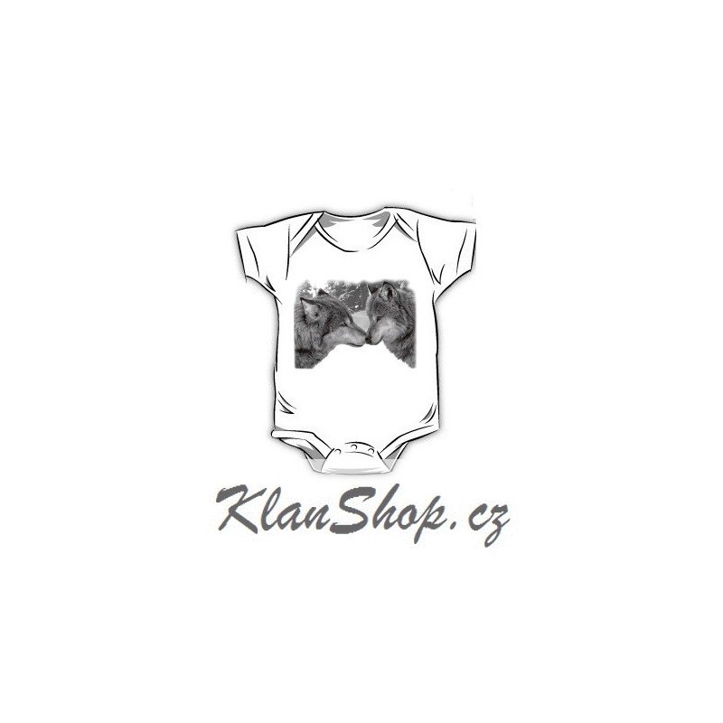 Dětské bílé (kojenecké) body (dupačky) s dobarvujícím se potiskem – Dva mazlící se vlci.