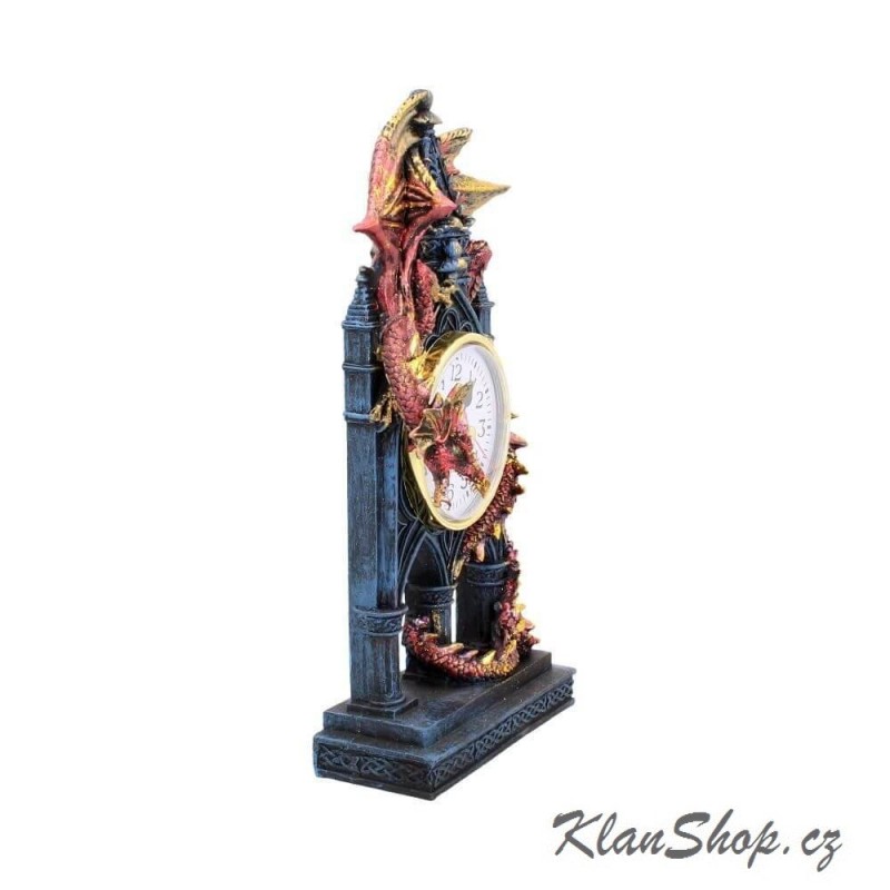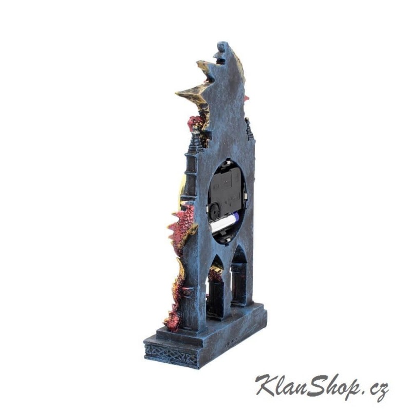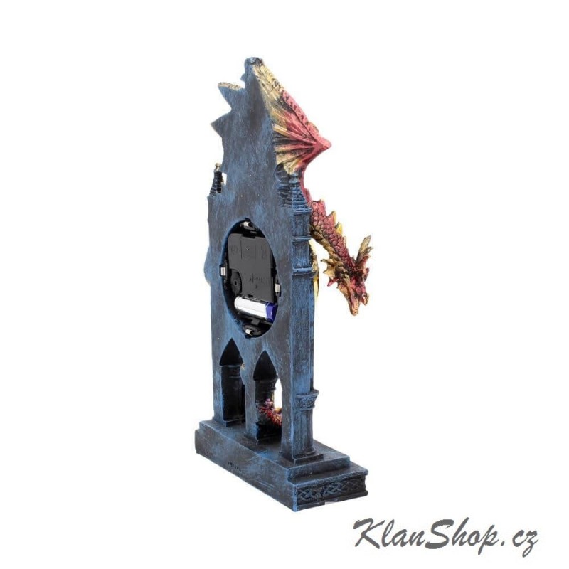 Dekorační hodiny s obrázkem - ručně malovaná pryskyřice - rudý drak na věži.