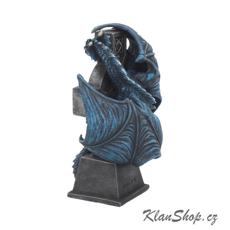 Dekorační hodiny - modrý drak s gotickým křížem.