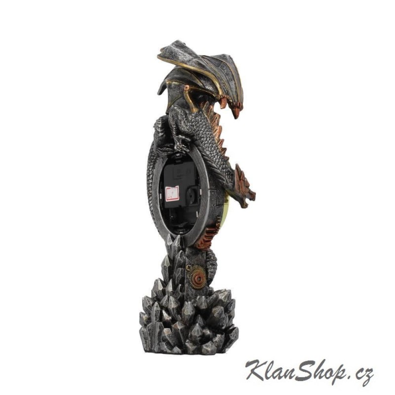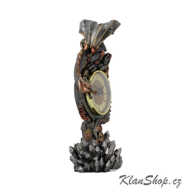 Dekorační hodiny - steampunk drak na krystalech.