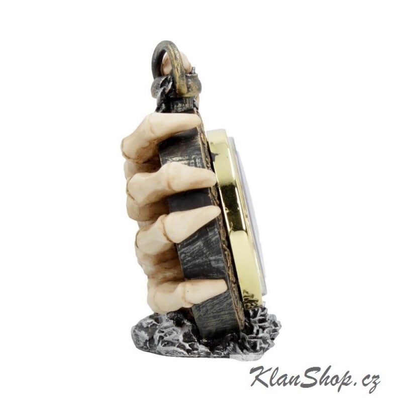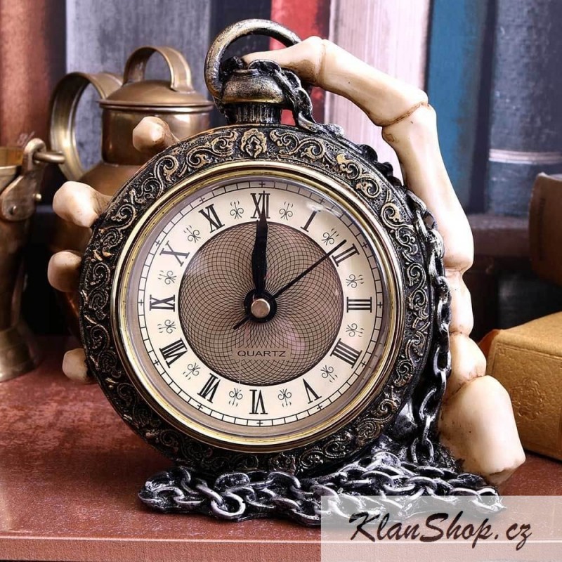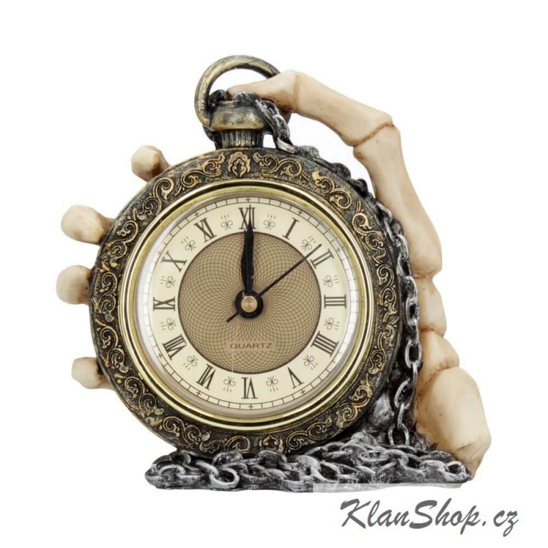 Dekorační hodiny - skeleton ruka s klasickými cibulemi.