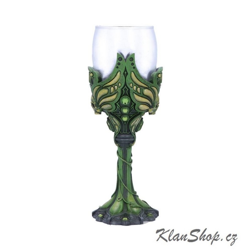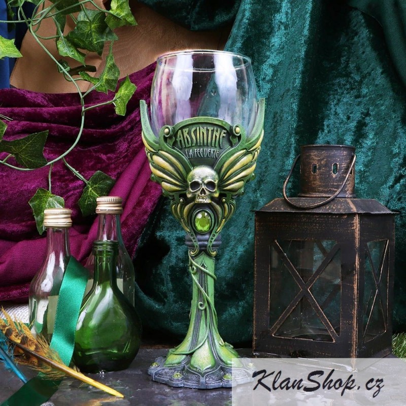 Dekorační pohár (kalich či číše) - lebka s křídly, Absinth.