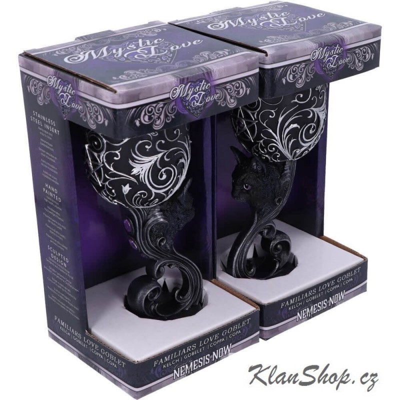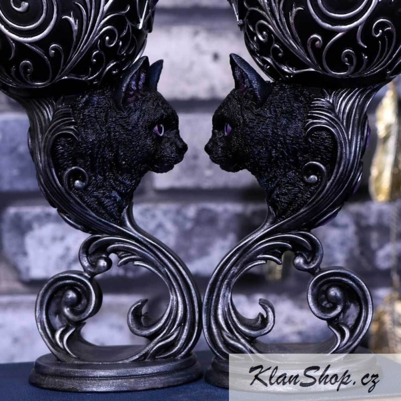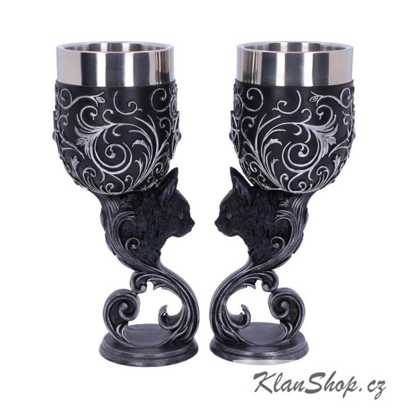 Dekorační pohár (kalich či číše) - kalichy pro páry - černé fialovooké kočky s pentagramem.