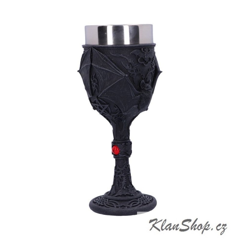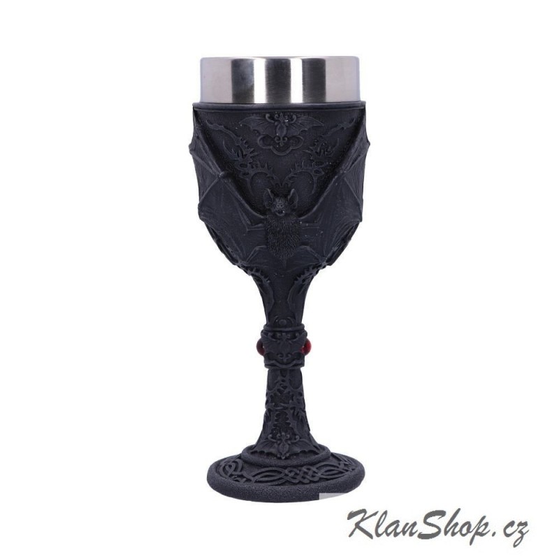Dekorační pohár (kalich či číše) -netopýr s červeným kamenem.