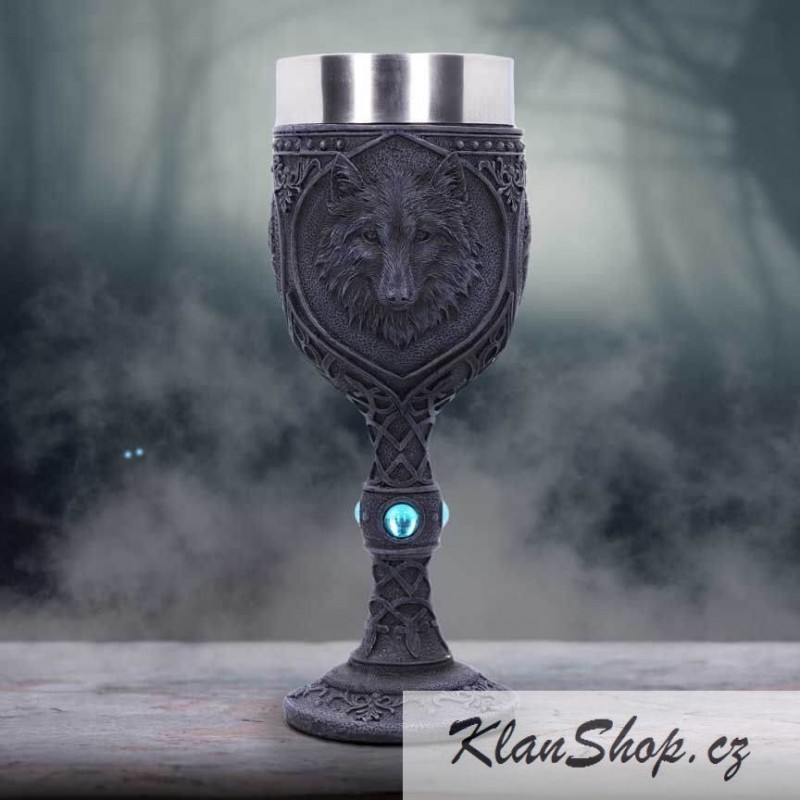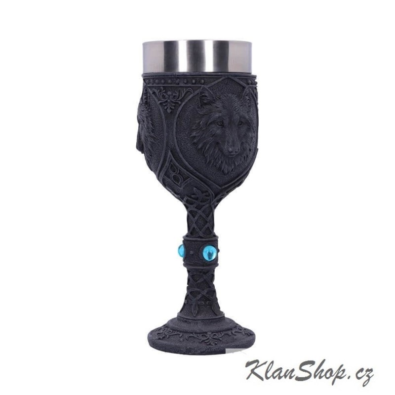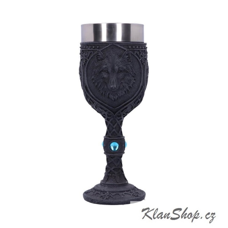 Dekorační pohár (kalich či číše) - černý vlk se zdobením a modrými kameny.