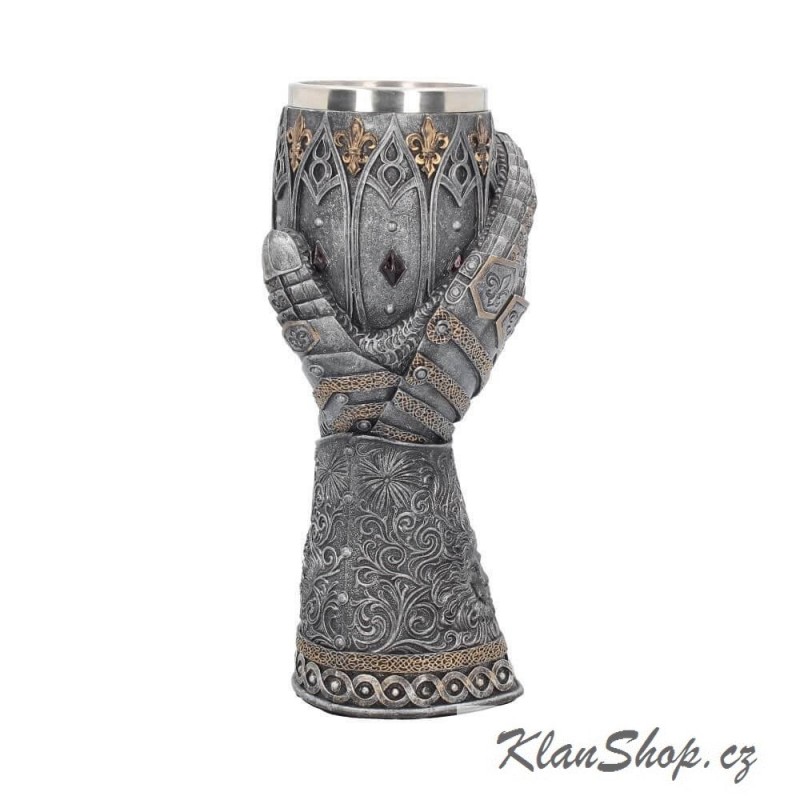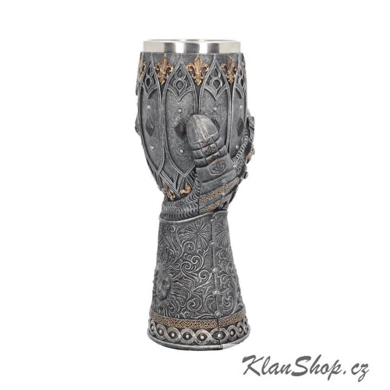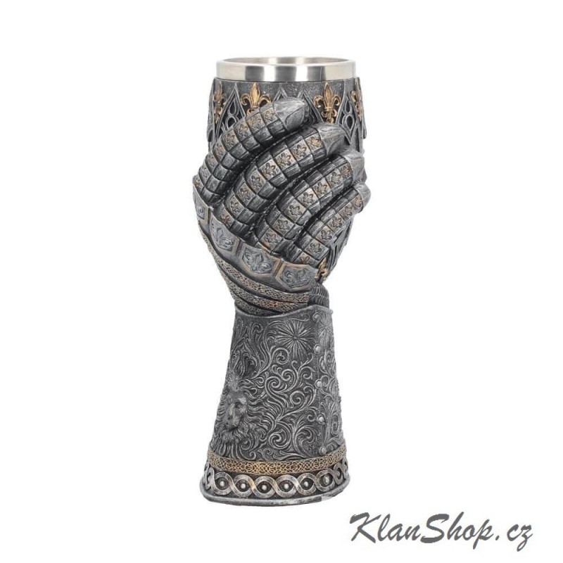 Dekorační pohár (kalich či číše) - rytířská rukavice se lvem a ornamenty.