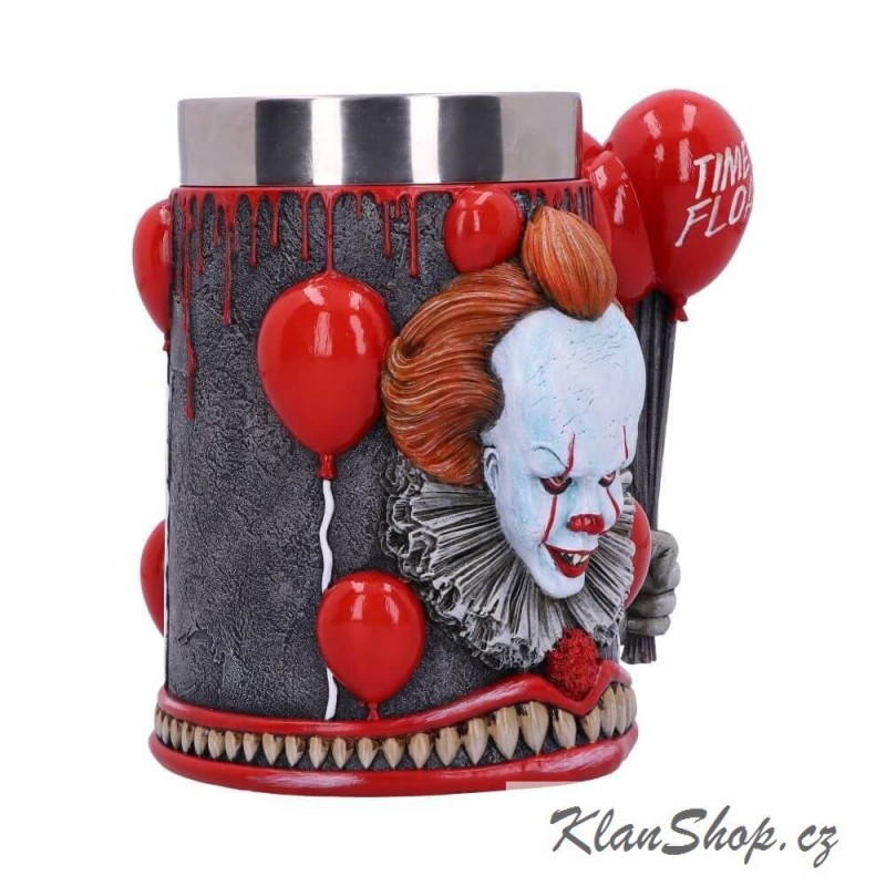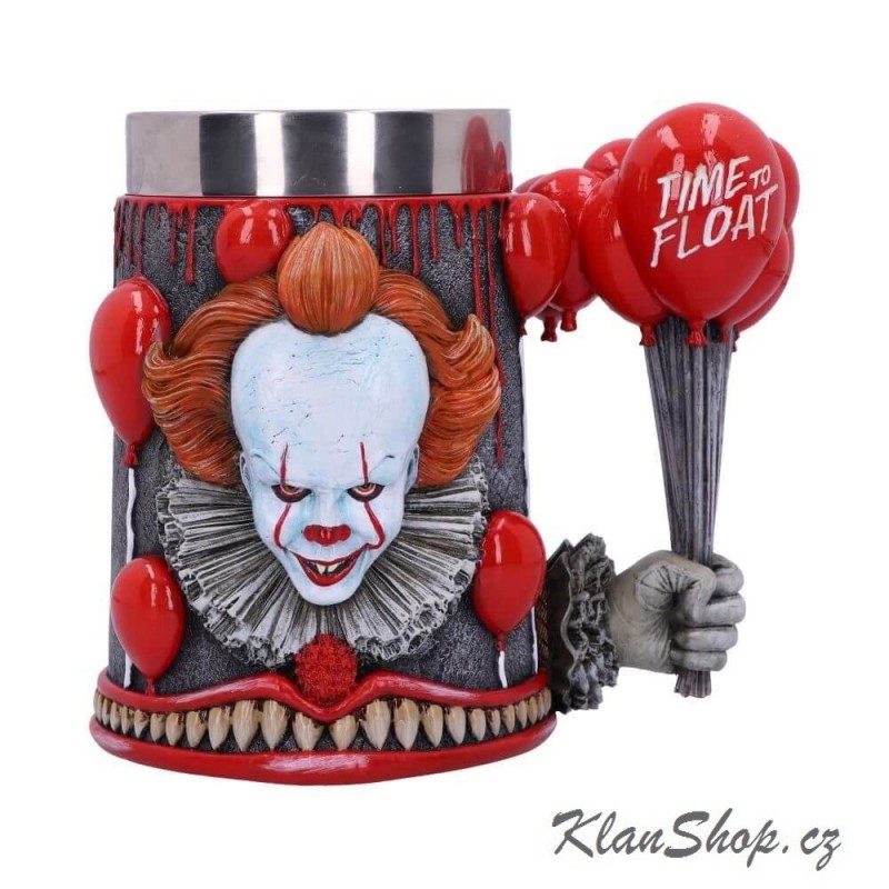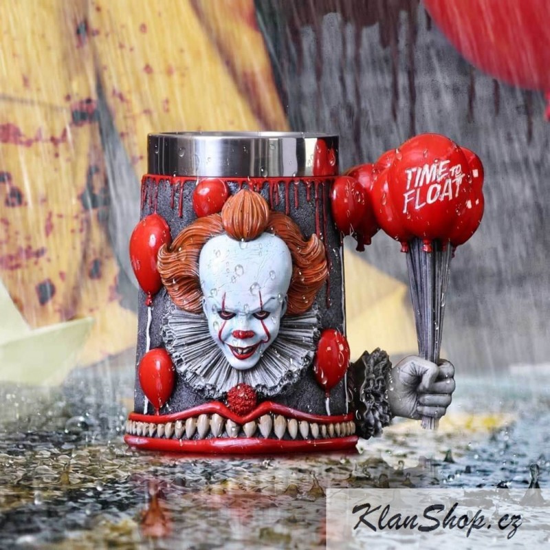 Dekorační korbel na pivo - It (To) Pennywise - Time to Float - horror klaun.