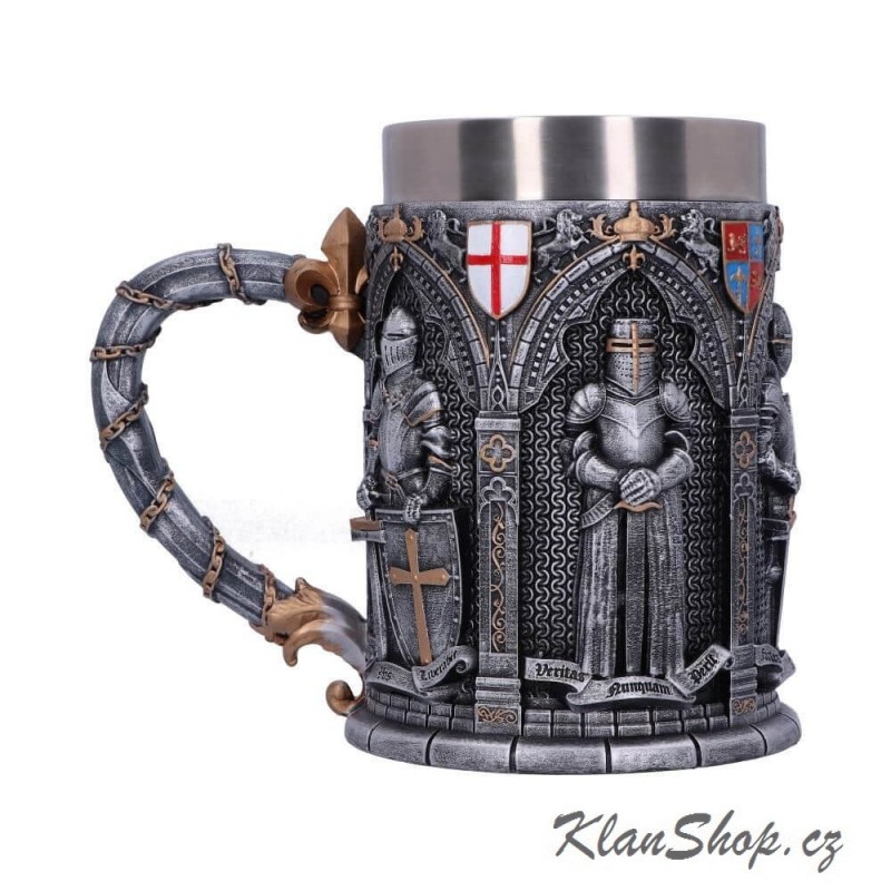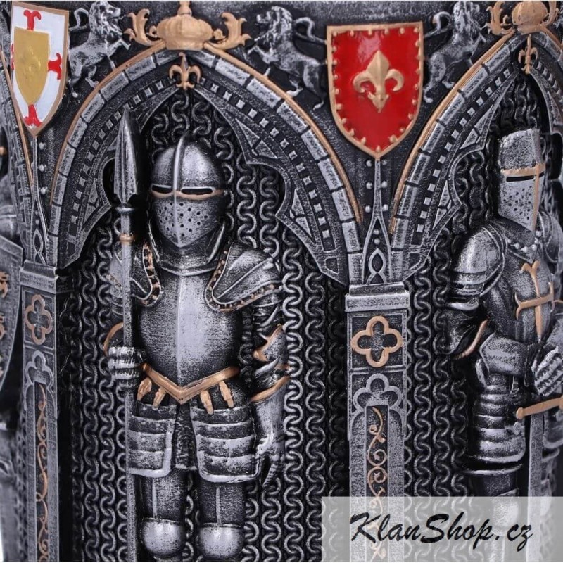Dekorační korbel na pivo - anglický středověký korbel s rytíři.
