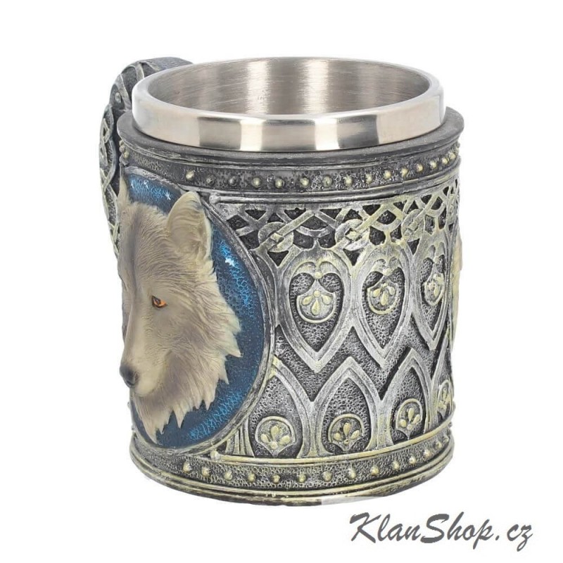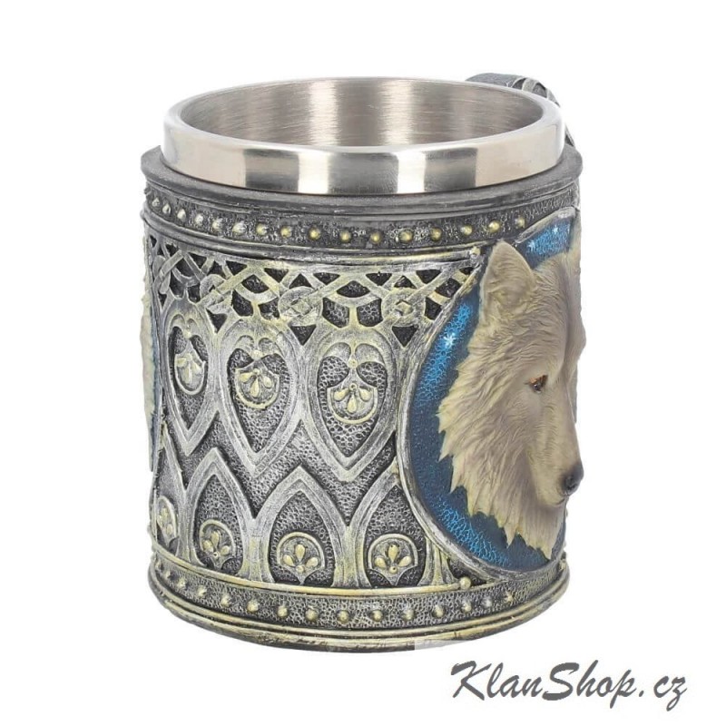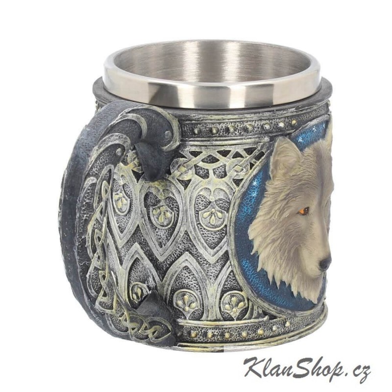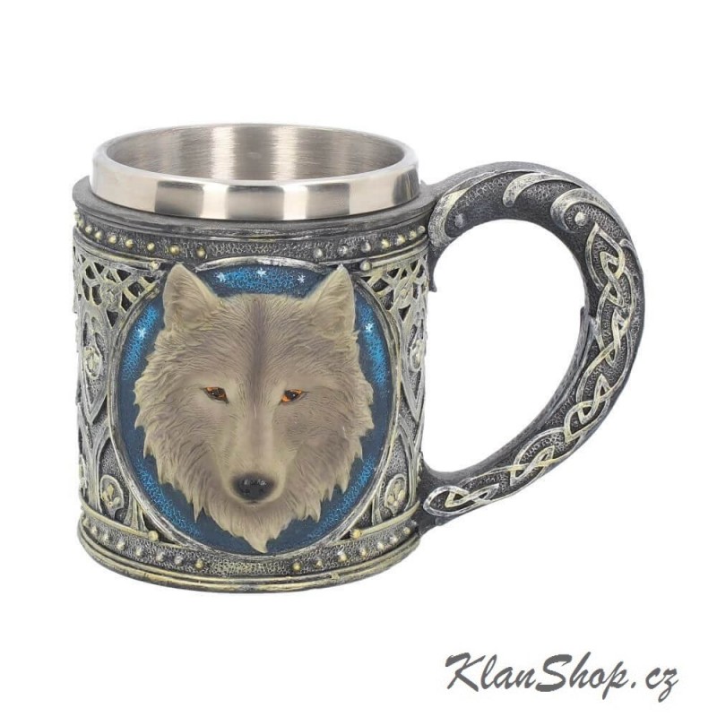 Dekorační korbel na pivo - vlčí hlava s ornamenty.