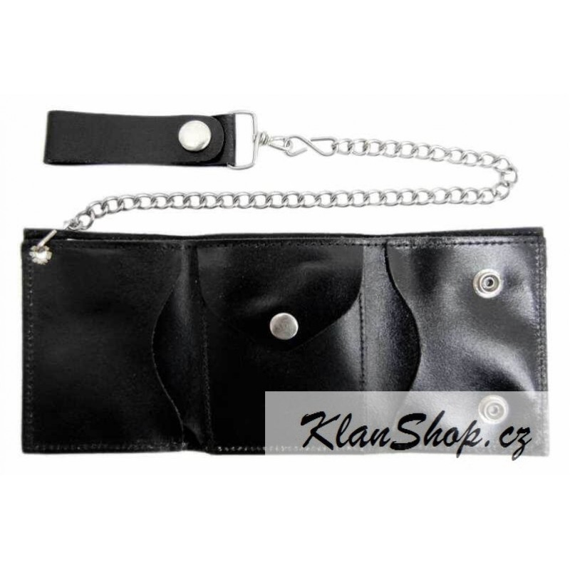 Kožená černá peněženka s řetězem pro motorkáře - americká orlice.