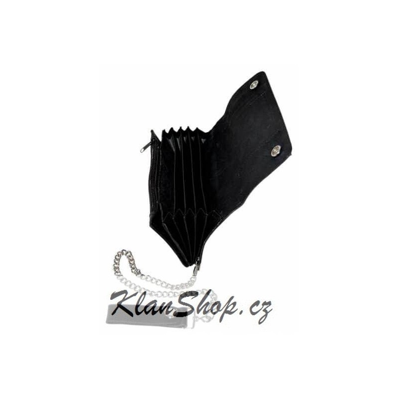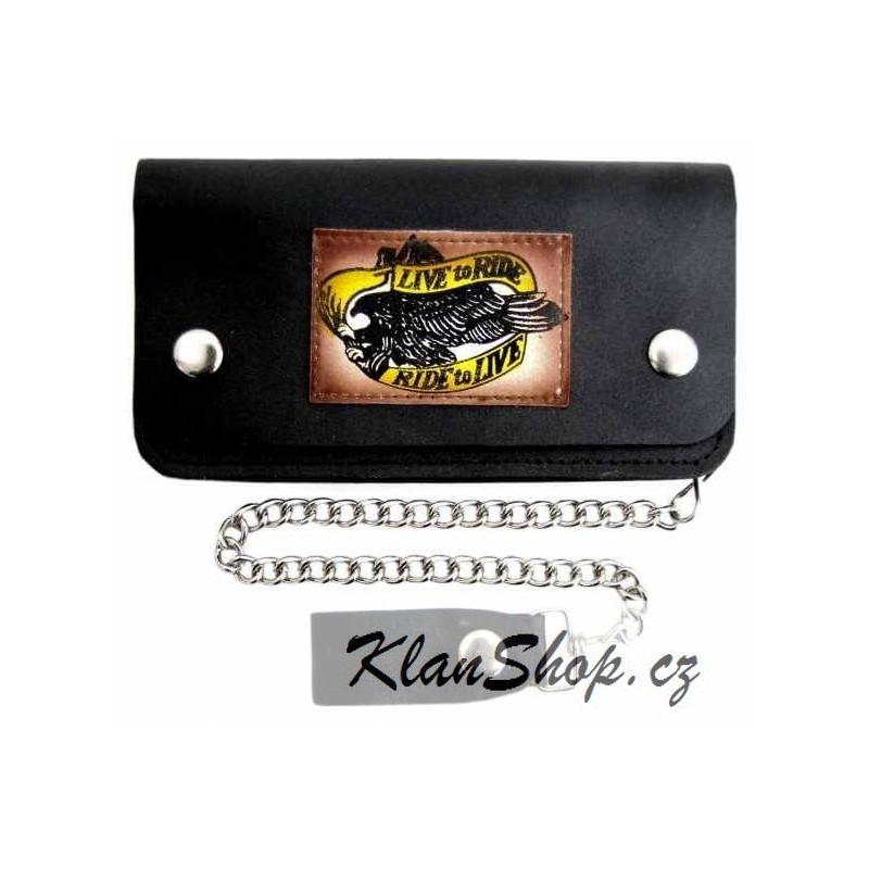 Kožená černá peněženka s řetězem pro motorkáře - orlice Live to ride, Ride to live.