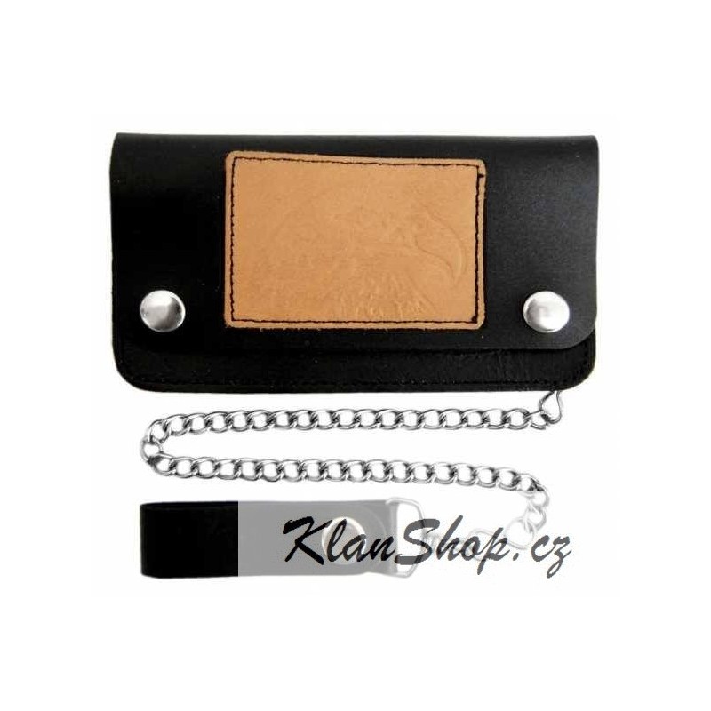 Kožená černá peněženka s řetězem pro motorkáře - Orel.