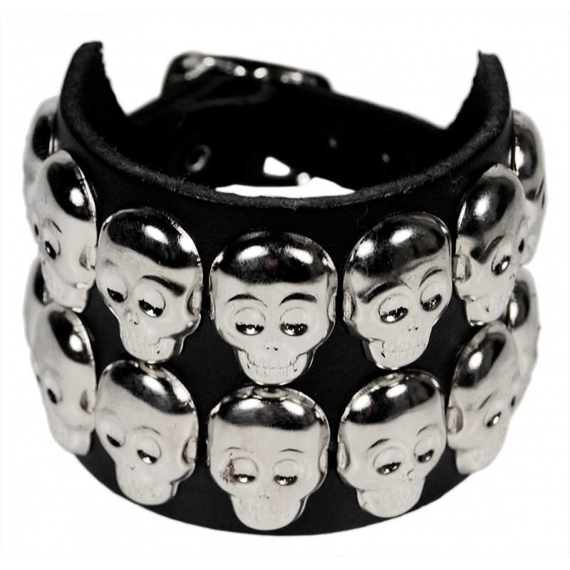 Kožený stahovák na ruku s lebkami, 2 řady.