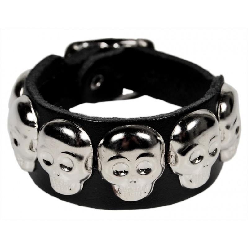 Kožený stahovák na ruku s lebkami, 1 řada.