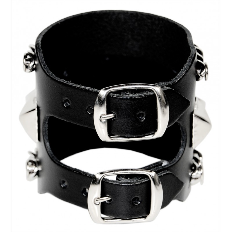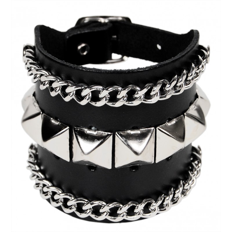 Kožený stahovák na ruku s pyramidami a řetízky.