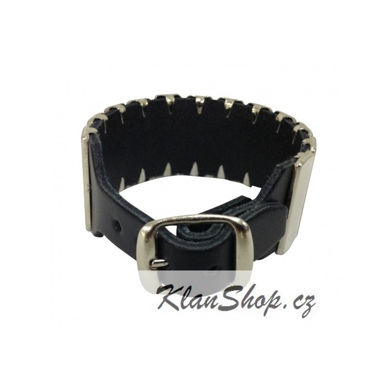Kožený stahovák na předloktí s ozdobnými plíšky.