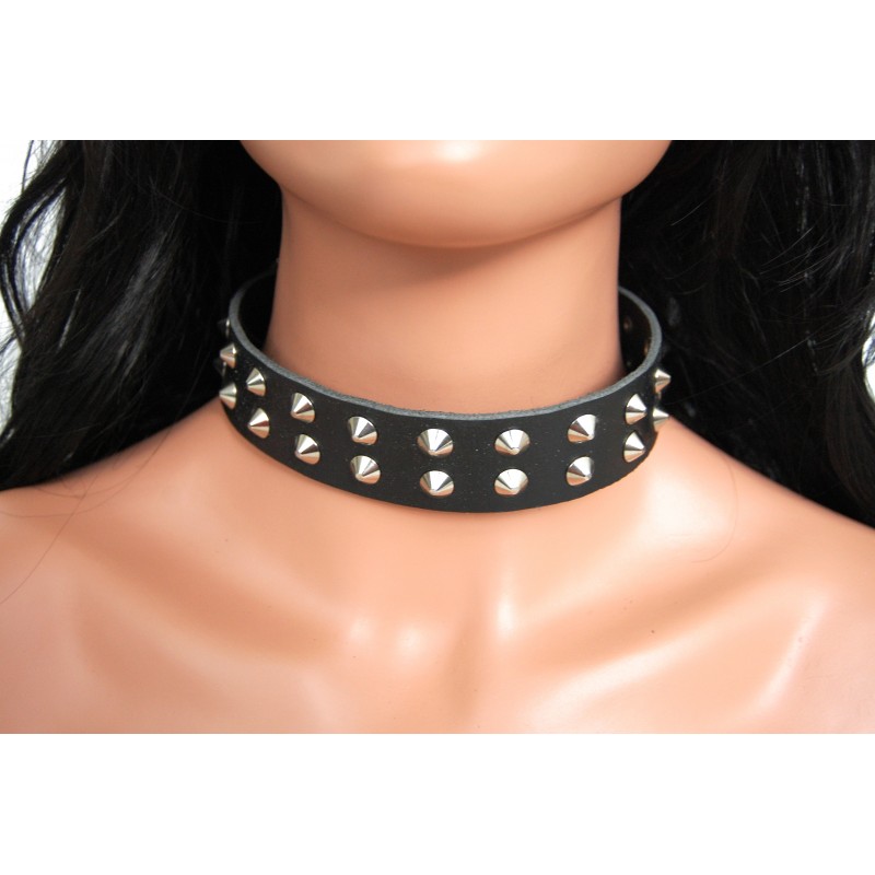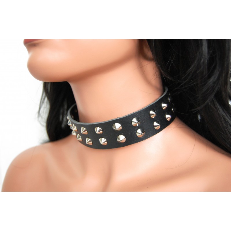 Kožený obojek na krk s malými špičkami, 2 řady.