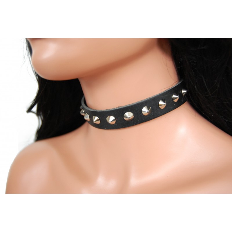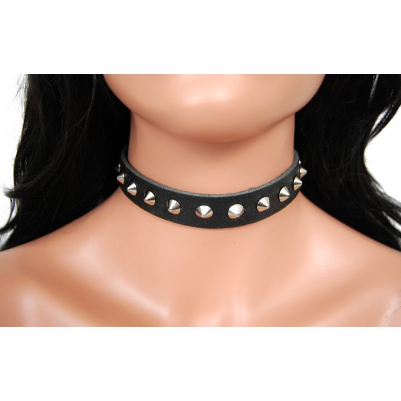 Kožený obojek na krk s malými cvoky, 1 řada.