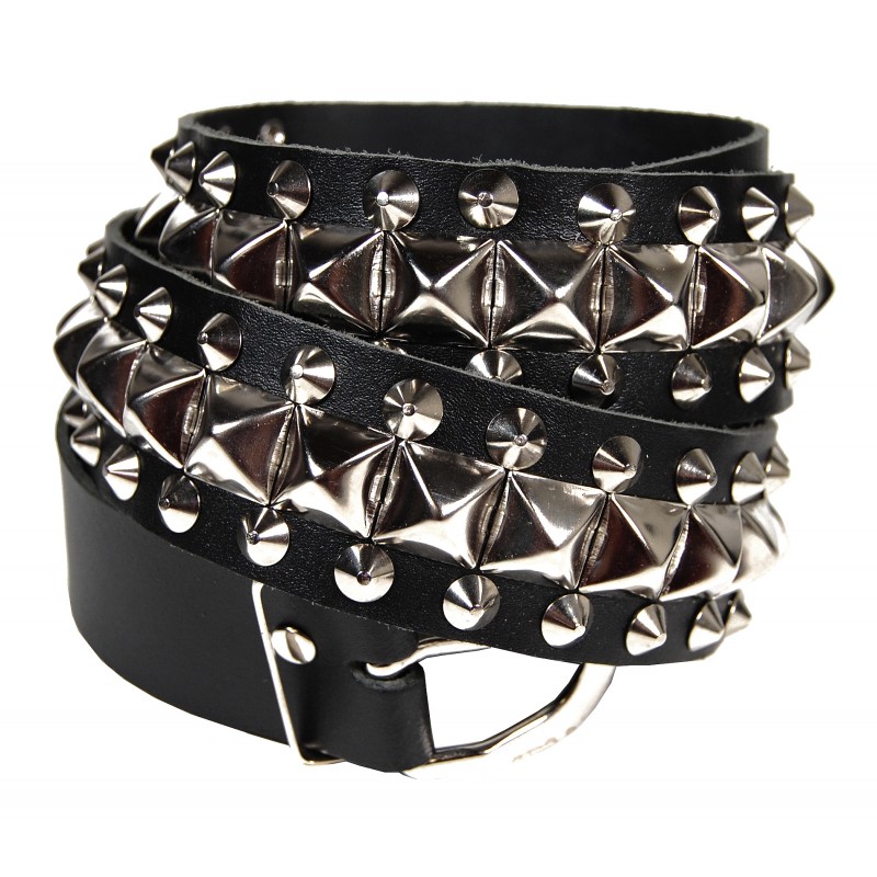 Kožený opasek s pruhem pyramid a dvěma pruhy špiček.