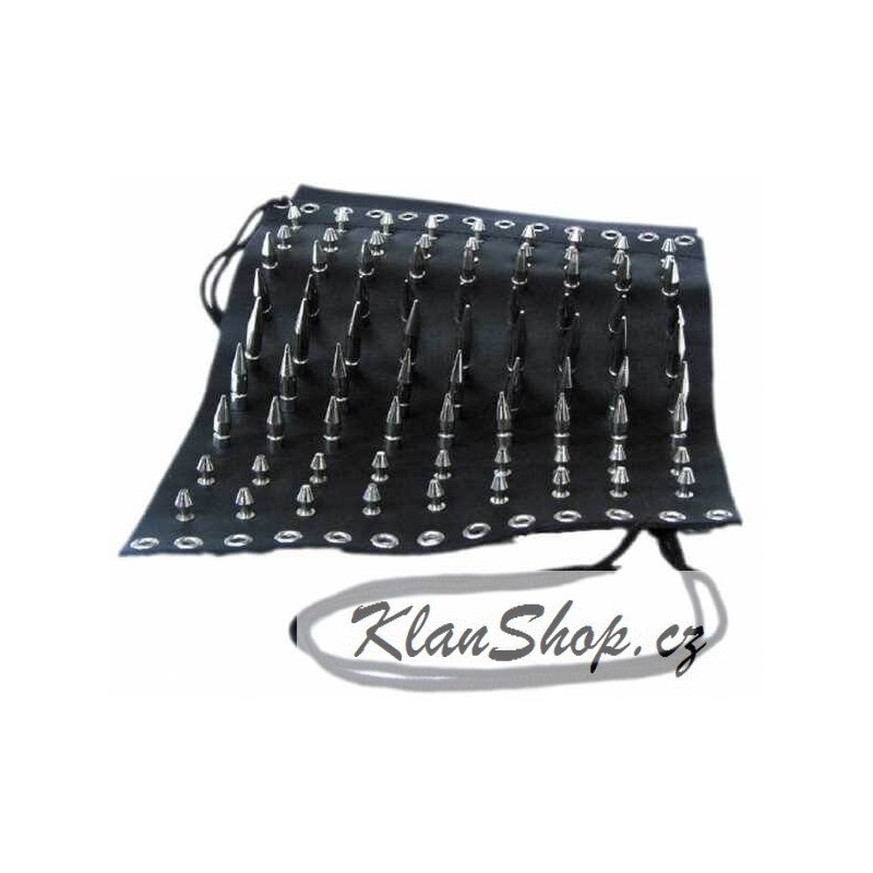 Velký kožený stahovák na holeň nebo předloktí s 81 různými hroty v 9 řadách.