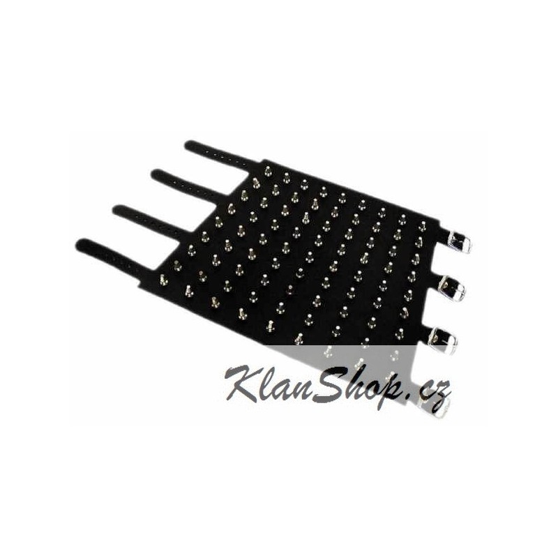 Velký kožený stahovák na holeň nebo předloktí s 81 různými hroty v 9 řadách.