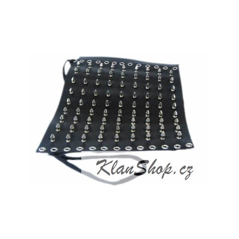 Velký kožený stahovák na holeň nebo předloktí s 81 různými hroty v 9 řadách.