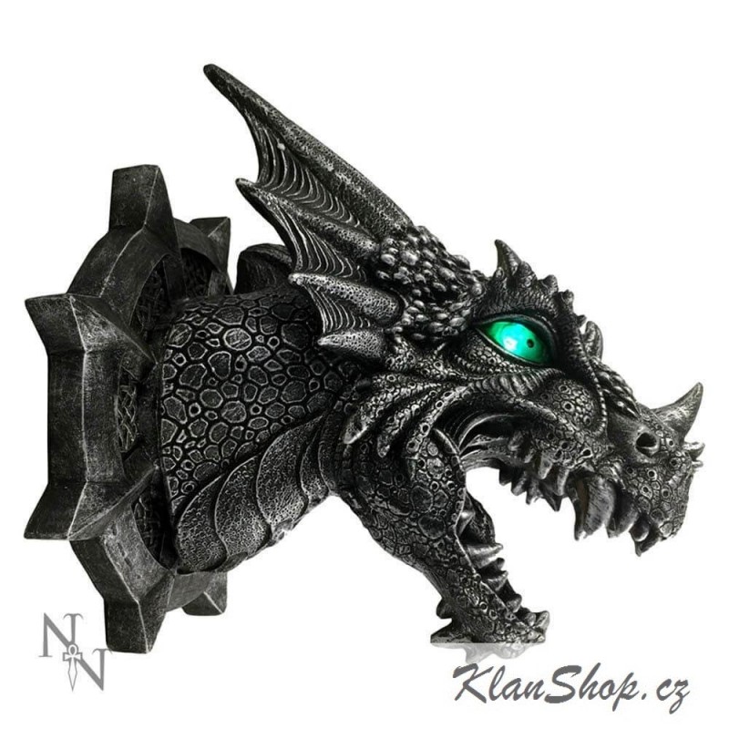 Dekorační nástěnná lampa - zelenooký černý drak.