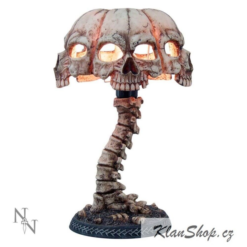 Dekorační stolní lampa - lebky na páteři.