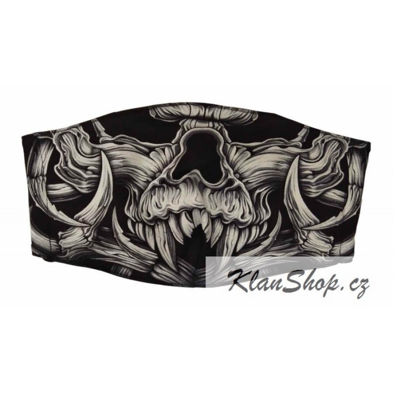 Ochranná maska na obličej - celopotištěná a svítící v noci - lebka s tesáky.