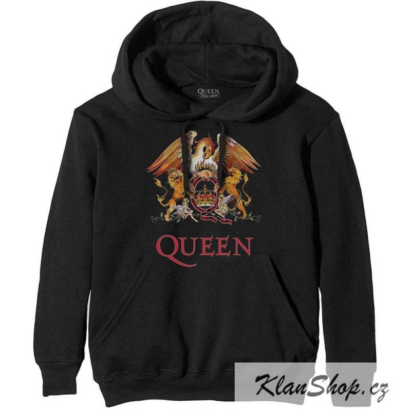Pánská (unisex) černá mikina s kapucou Queen Classic Crest.