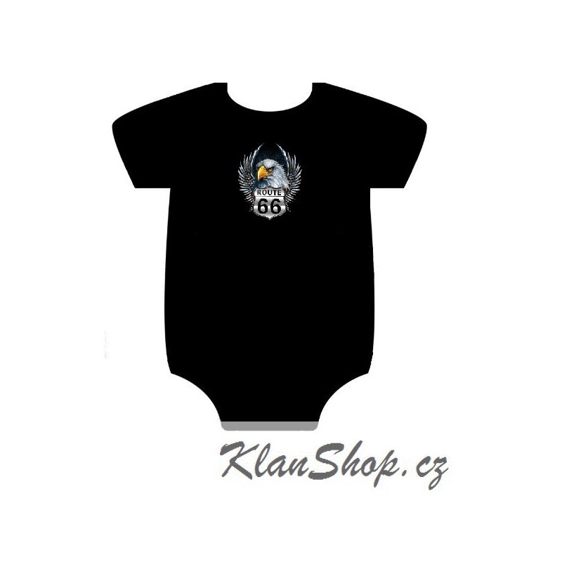 Dětské černé motorkářské (kojenecké) body (dupačky) s potiskem – Route 66 Orlice.
