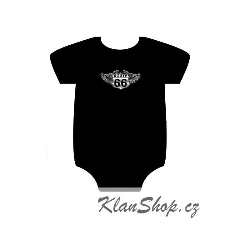 Dětské černé motorkářské (kojenecké) body (dupačky) s potiskem – Route 66 křídla.