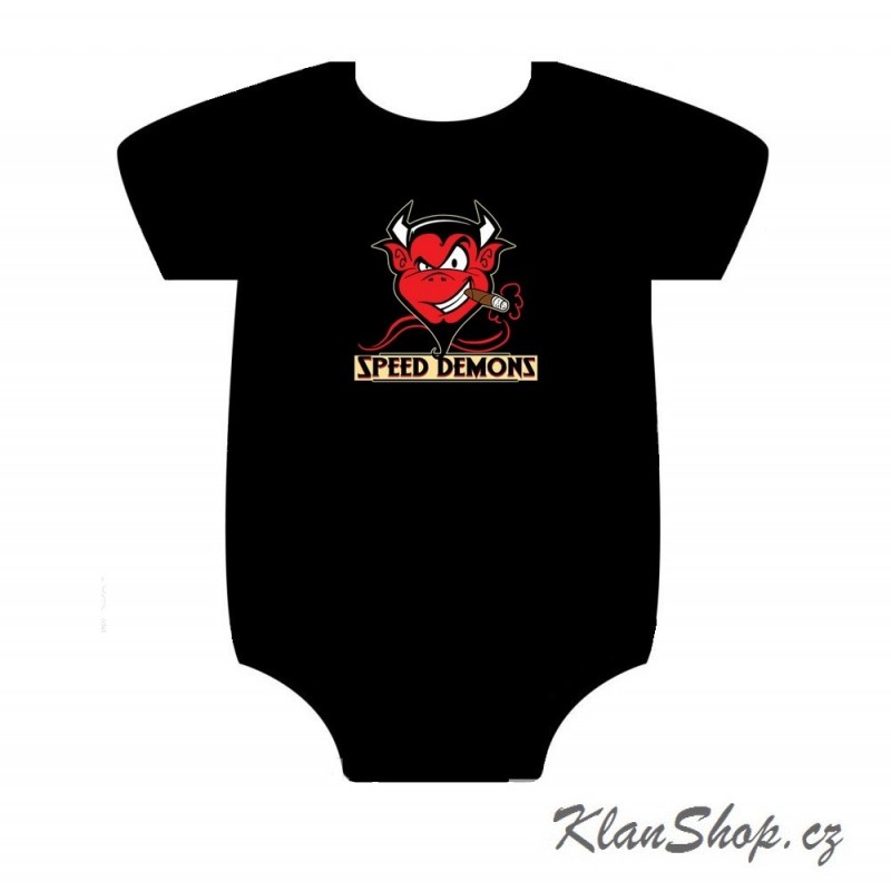 Dětské černé motorkářské (kojenecké) body (dupačky) s potiskem – Čert Speed Demon.