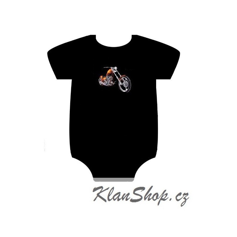Dětské černé motorkářské (kojenecké) body (dupačky) s potiskem – Chopper motorka.