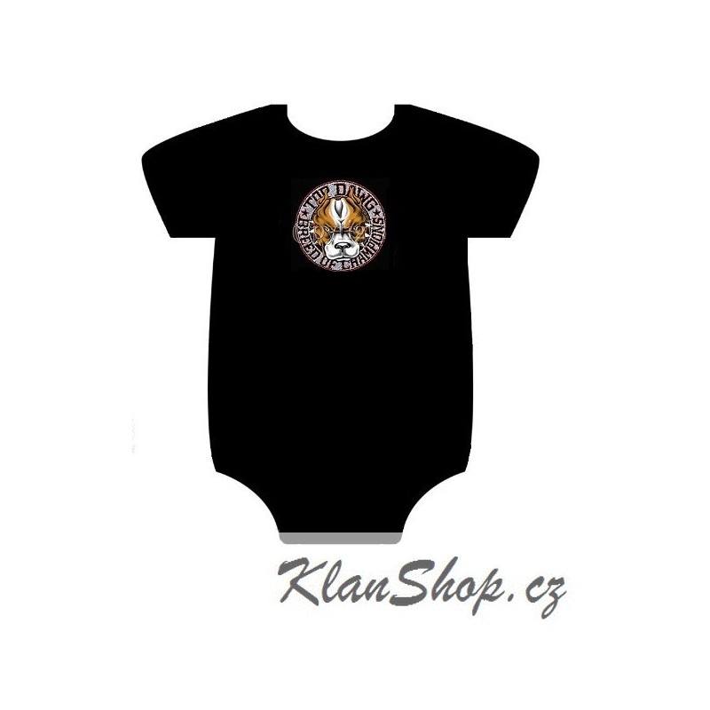 Dětské černé motorkářské (kojenecké) body (dupačky) s potiskem – Pitbull.